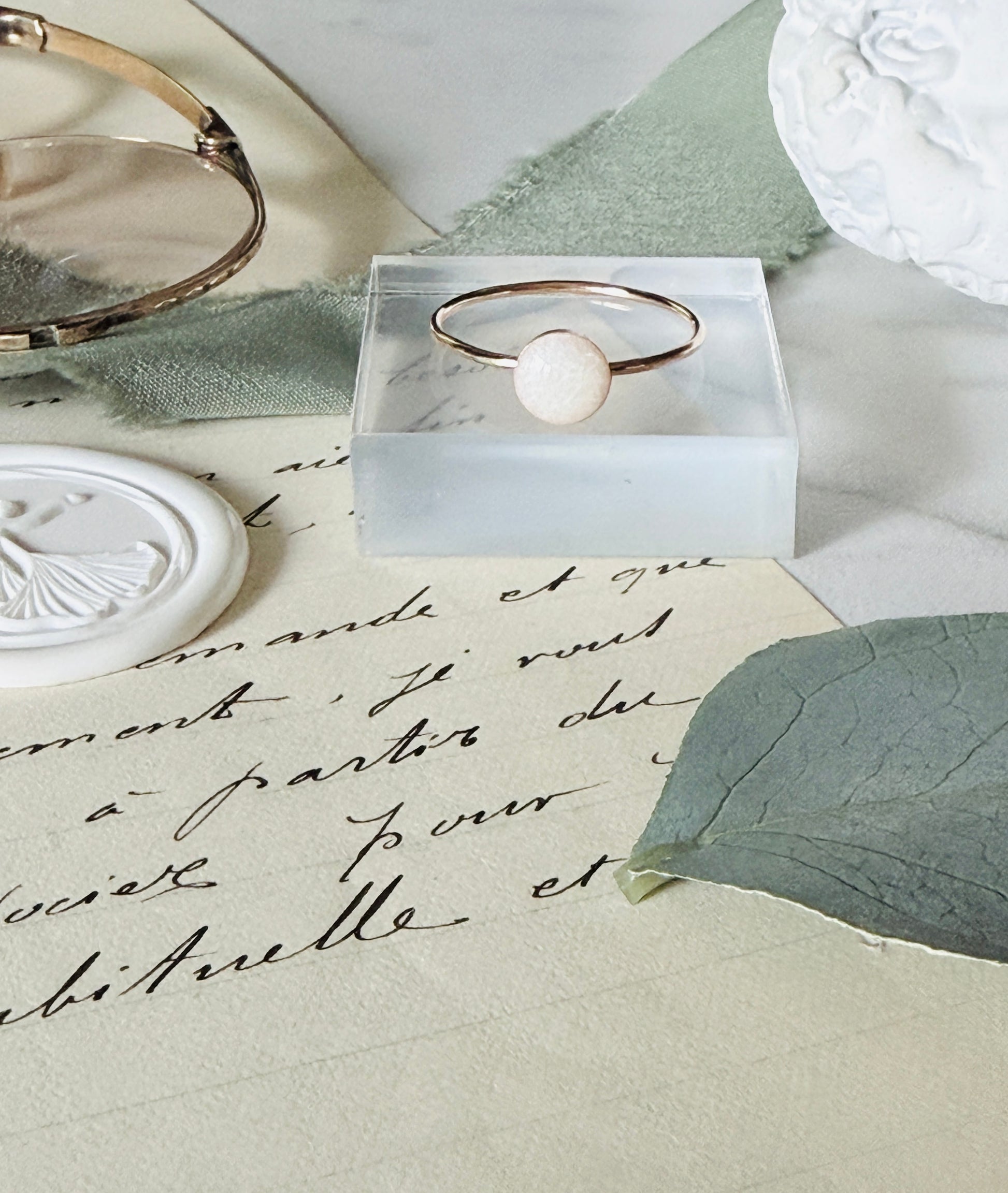 Timeless and minimal, this 6 mm round memorial stone ring is a classic way to honor your most meaningful memories. Handcrafted in your choice of 14k gold-filled or 925 sterling silver, it features a simple, delicate band that makes it perfect for everyday wear.